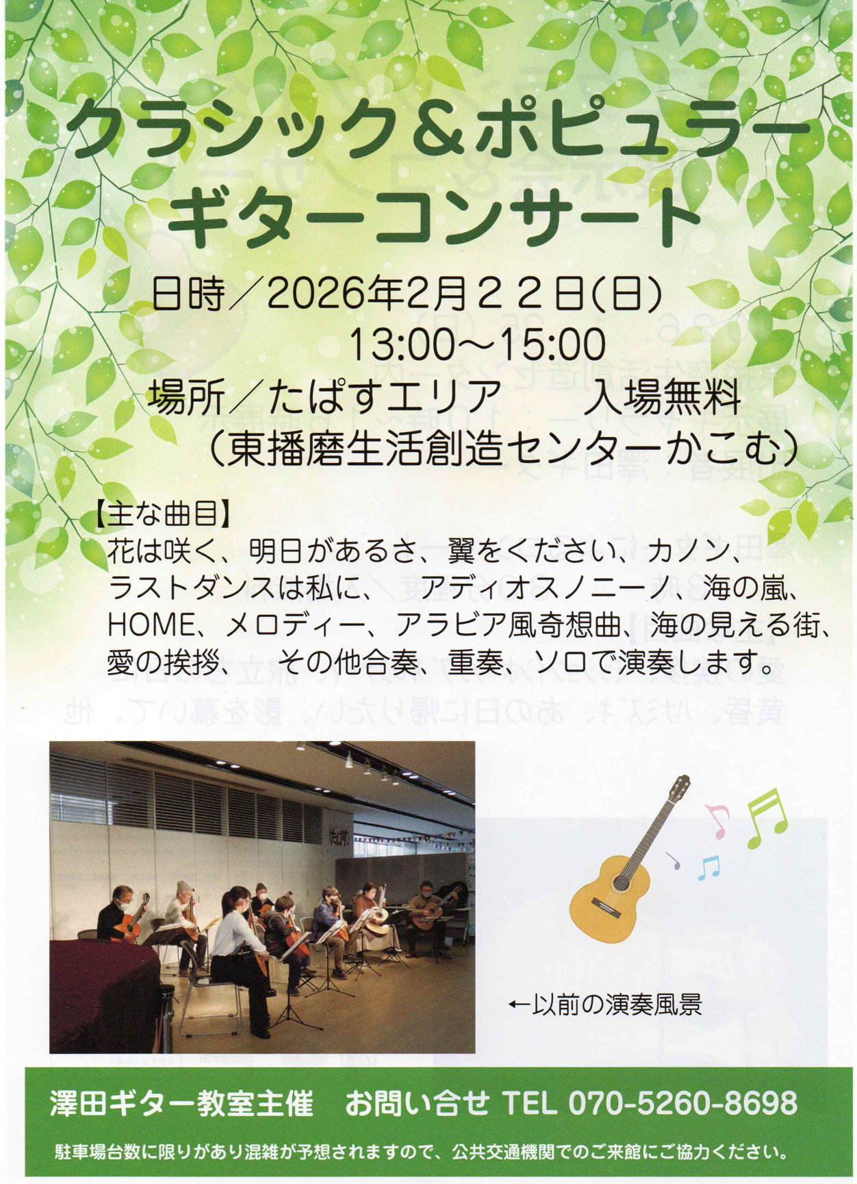 ギターコンサート開催:13時〜14時30分(たぱす)